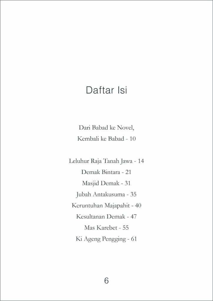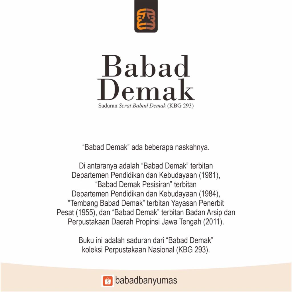 Buku ini adalah saduran dari “Babad Demak” koleksi Perpustakaan Nasional (KBG 293).