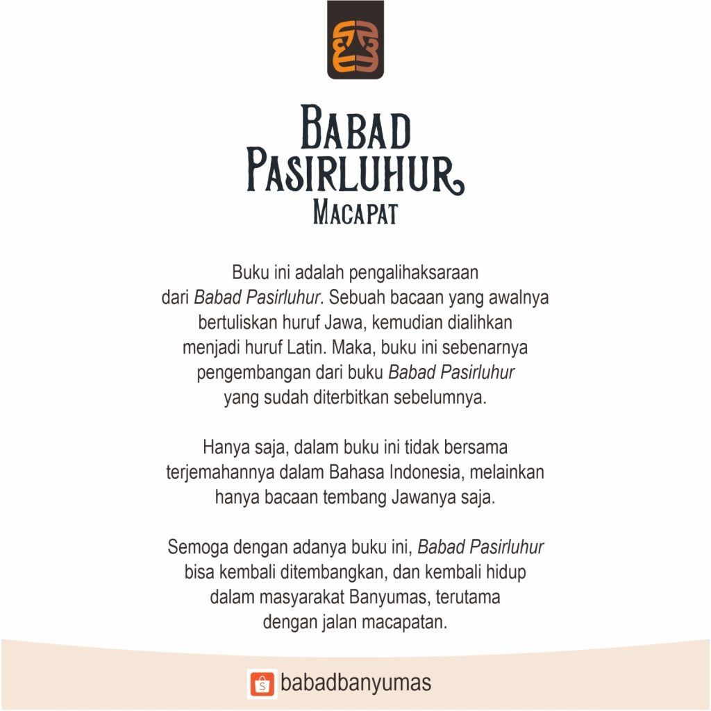 Semoga dengan adanya buku ini, Babad Pasirluhur bisa kembali dikembangkan, dan kembali hidup dalam masyarakat Banyumas, terutama dengan jalan macapatan.