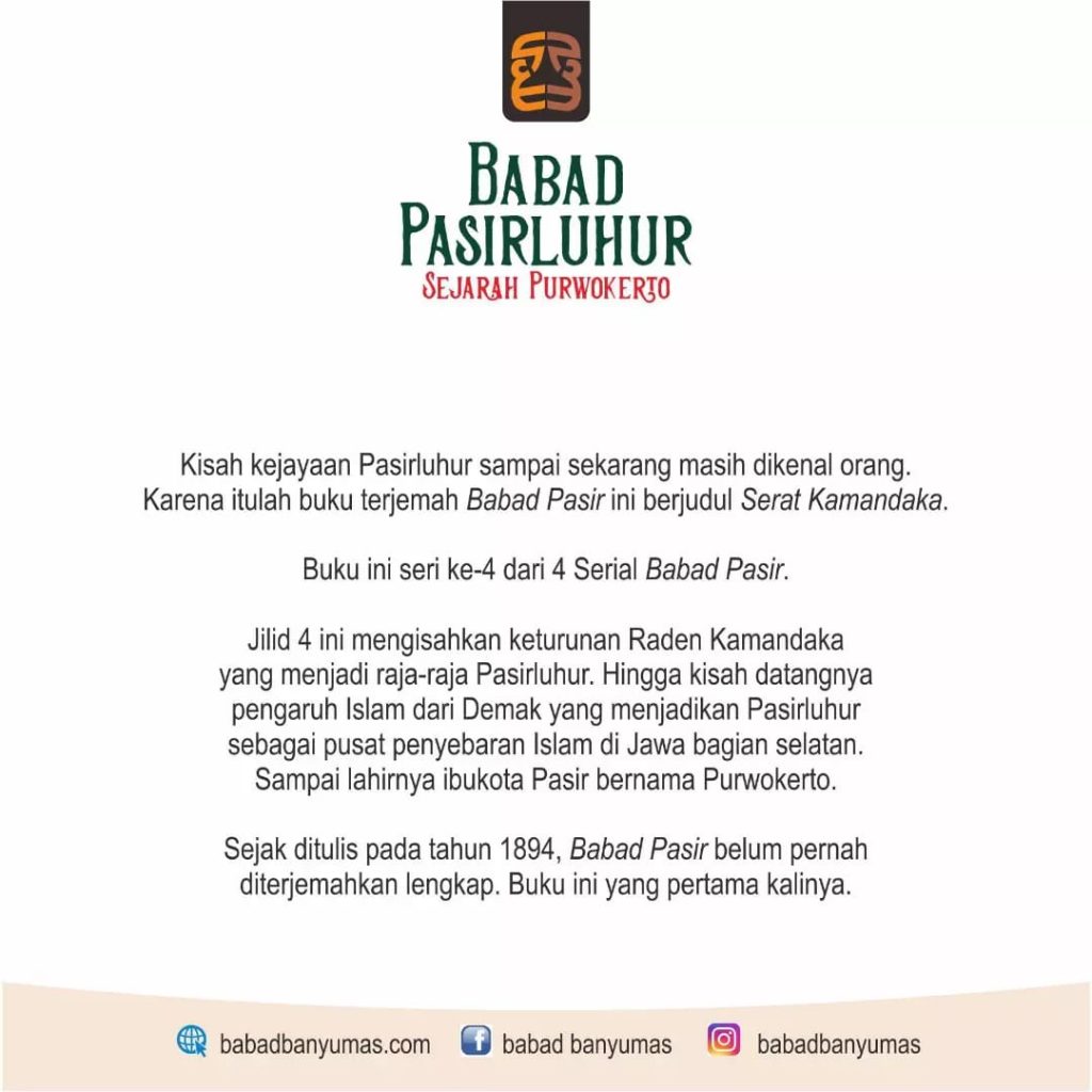 Kisah kejayaan Pasirluhur sampai sekarang masih dikenal orang. Karena itulah buku terjemah Babad Pasir ini berjudul Serat Kamandaka.