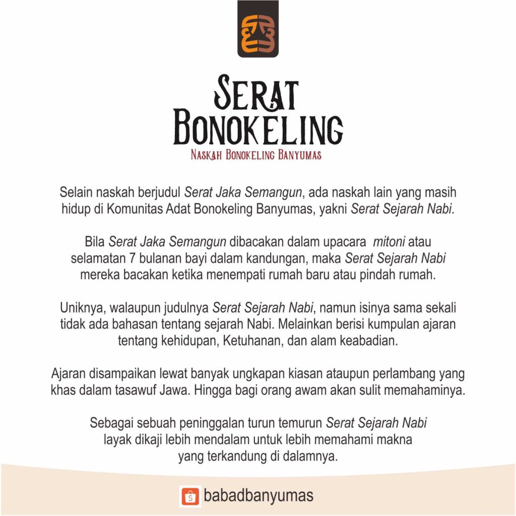 Selain naskah berjudul Serat Jaka Semangun, ada naskah lain yang masih hidup di Komunitas Adat Bonokeling Banyumas, yakni Serat Sejarah Nabi.